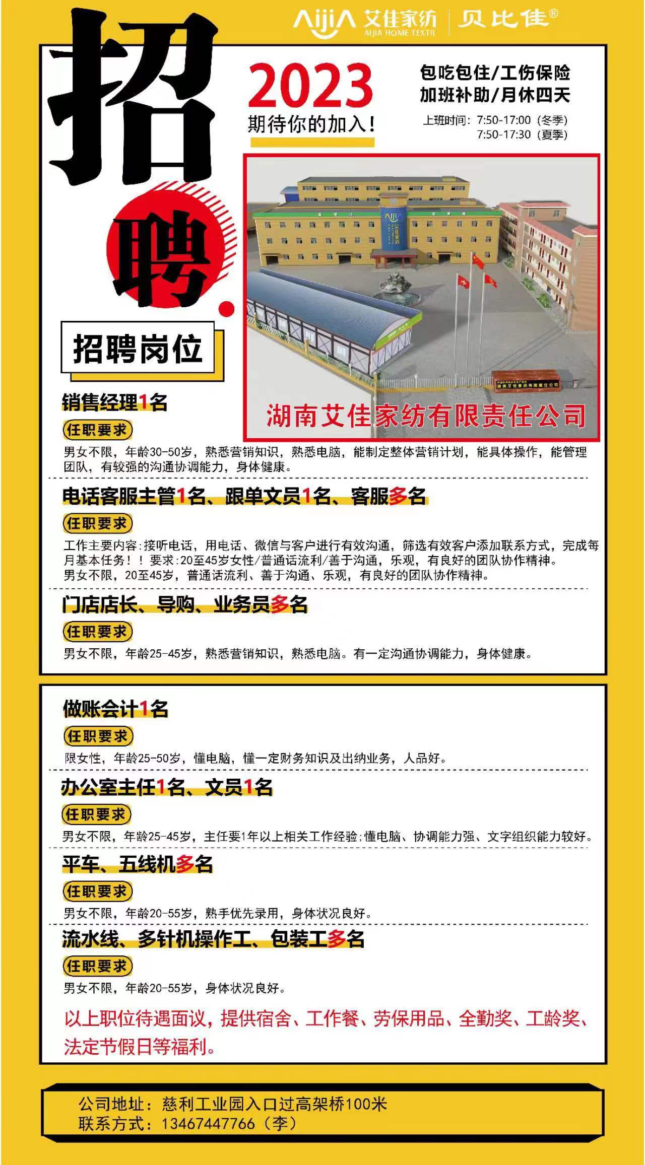 艾佳家纺招聘多岗位