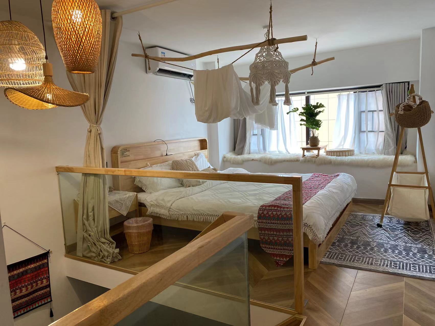 世纪新城1栋波西米亚风格2室一厅精装复式公寓出租,空调.洗烘一体机,真皮沙发,麻将机,燃气灶..一应俱全,可日租.月租.年租,拎包入住。