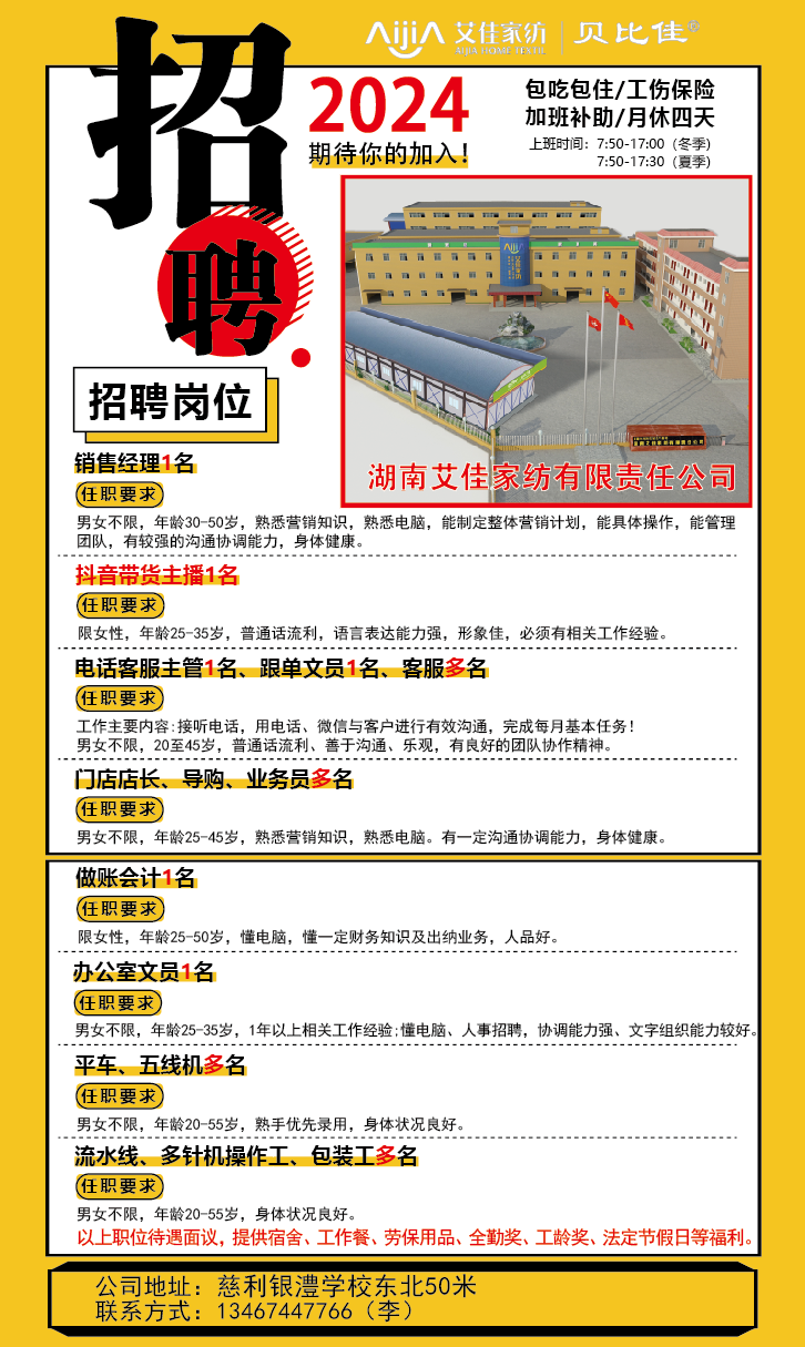 艾佳家纺招聘多岗位