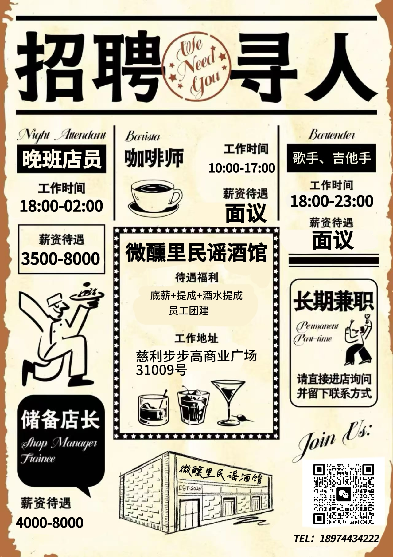 微醺里民谣酒馆招聘工作人员